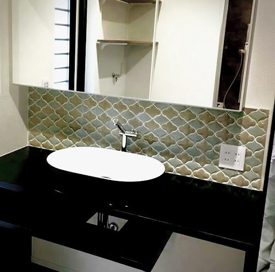 『TORIKUMO』 可愛らしい空間 またまたTORIKUMOを使って頂きました!タイルの色味に合わせて目地もクリーム色をチョイスして下さっています。こちらの意